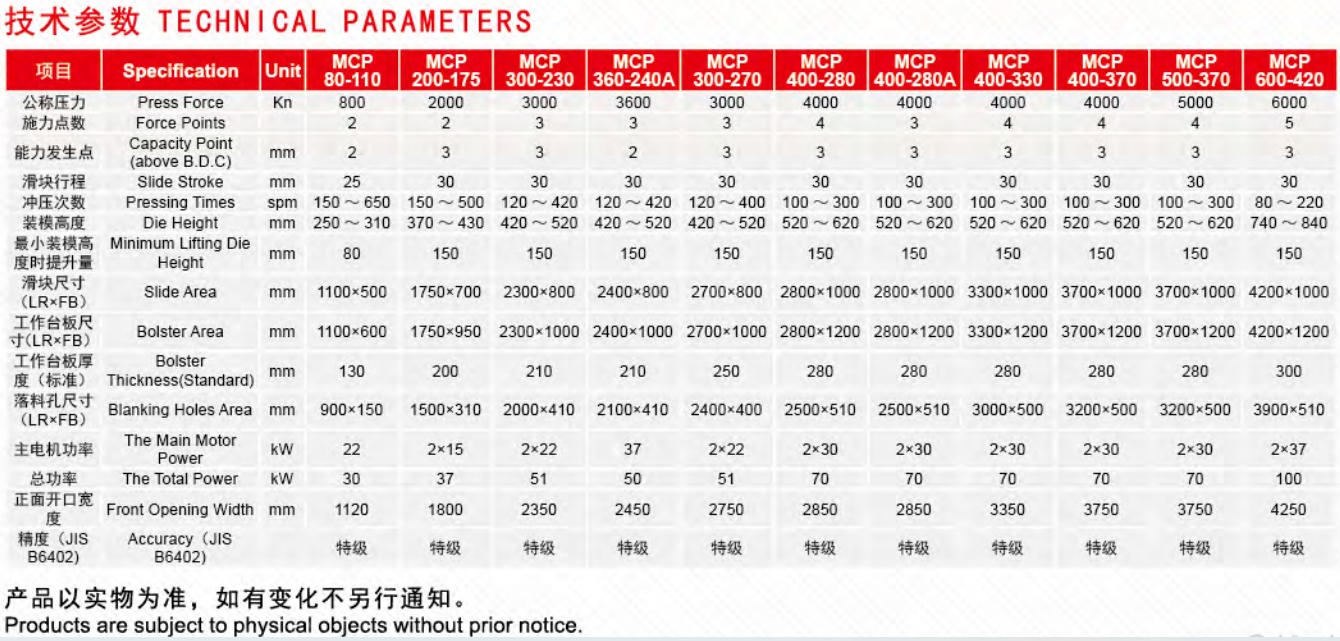 高精度:靜態精度:JIS特級允差的1/2,下死點動態精度:GB/T 29548超精密級