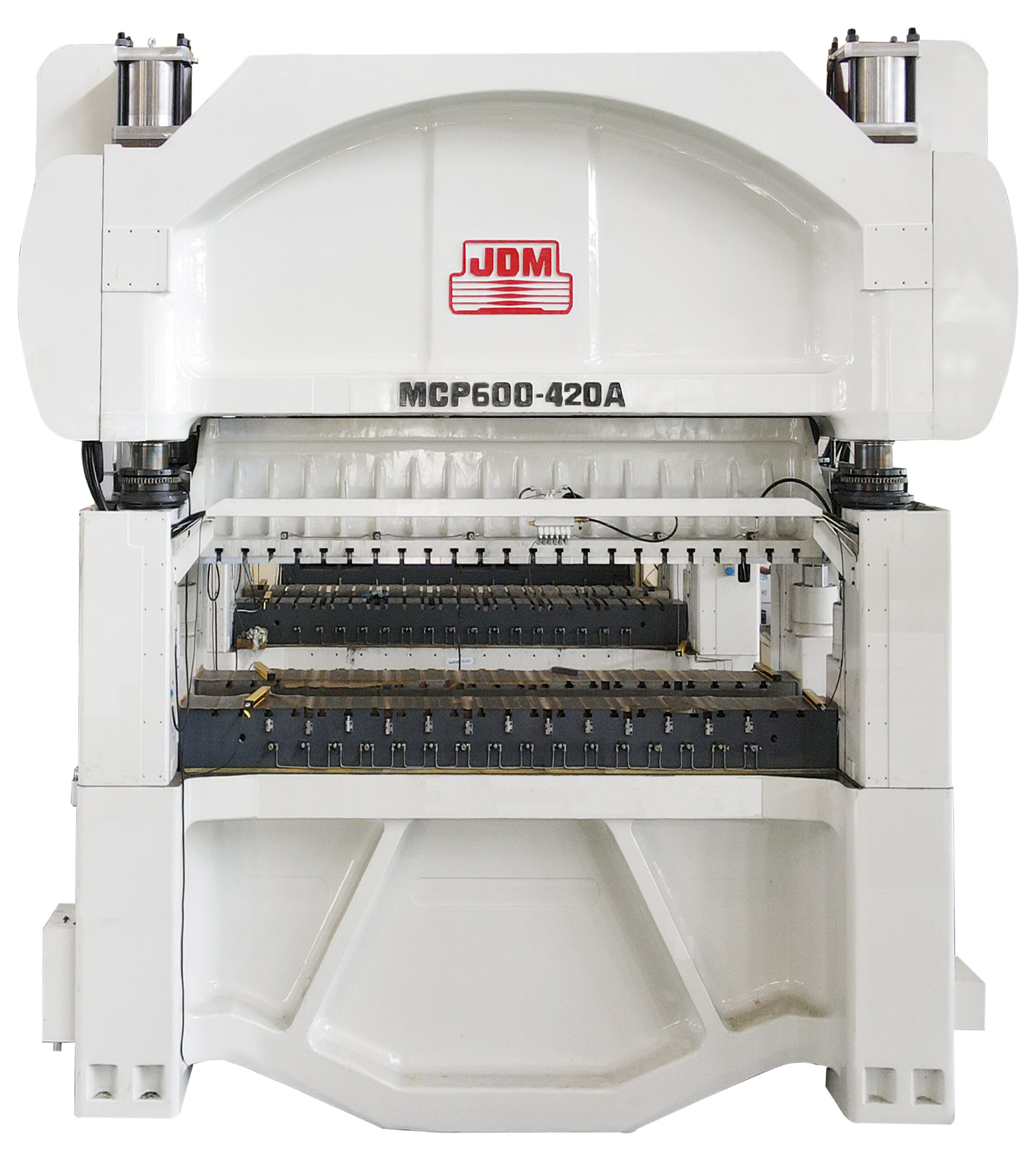 四柱頂置油缸結構,雙驅技術,滑塊多點施力,高剛性鑄造預應力床身,低慣量離合制動器,精密軸承,恒溫潤滑冷卻系統。